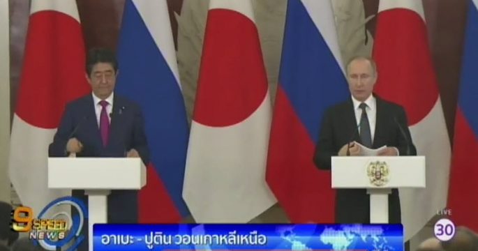 นายกรัฐมนตรีชินโสะ อาเบะ ของญี่ปุ่นและประธานาธิบดีวลาดิมีร์ ปูติน ของรัสเซียร่วมกันเรียกร้องให้เกาหลีเหนือยุติการกระทำใดๆ ที่ยั่วยุให้เกิดสถานการณ์ตึงเครียดขึ้นอีก