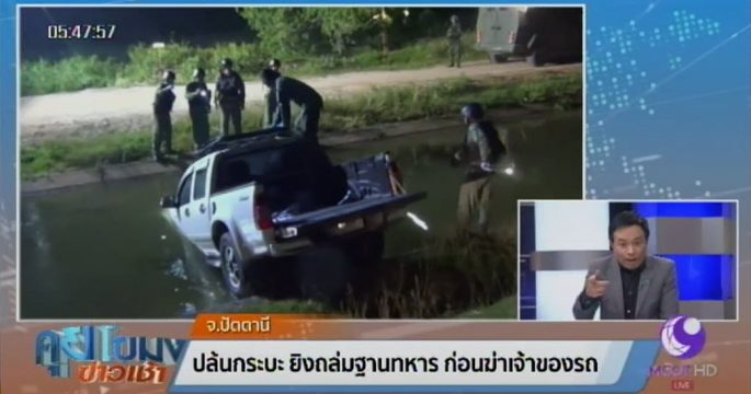 คนร้ายไม่ต่ำกว่า 5 ปล้นกระบะชาวบ้าน จับเจ้าของรถเป็นตัวประกัน ขับไปปาระเบิดและยิงถล่มฐานทหารปัตตานี ก่อนขับหนีไปตกคลอง ฆ่าตัวประกันทิ้ง แล้วเผ่นหนีลอยนวล คาดเป็นแก๊งคาร์บอมบ์บิ๊กซีปัตตานี