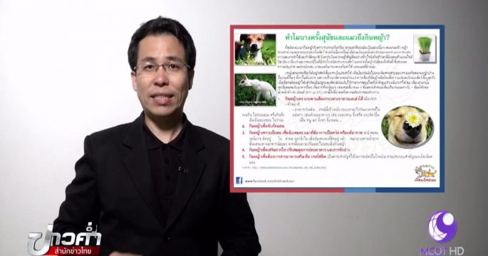 บนสังคมออนไลน์แชร์ว่าสุนัขหรือแมวกินหญ้า แปลว่ามันกำลังป่วย เรื่องนี้จริงหรือไม่ ติดตามจากศูนย์ชัวร์ก่อนแชร์