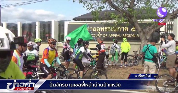 เชียงใหม่ 8 เม.ย. – ชาวเชียงใหม่ปั่นจักรยานผูกผ้าสีเขียว เซลฟี่หน้าหมู่บ้านตุลาการ ทวงคืนพื้นที่ป่าดอยสุเทพ พร้อมเรียกร้องให้รื้อถอนหมู่บ้านออก และทำพิธีสืบชะตา บวชป่า ปลุกจิตสำนึกให้ชาวเชียงใหม่รักษ์ผืนป่าดอยสุเทพ ประชาชนชาวเชียงใหม่ร่วมกันปั่นจักรยาน และผูกโบสีเขียว แสดงสัญลักษณ์ ปั่นจากหน้าหอประชุมและจัดแสดงสินค้านานาชาติเฉลิมพระเกียรติ 7 รอบพระชนมพรรษา จังหวัดเชียงใหม่ ไปยังหน้าหมู่บ้านตุลาการ หรือหมู่บ้านป่าแหว่ง บริเวณเชิงดอยสุเทพ และหยุดจอดเซลฟี่ โดยระบุว่าแม้จะมีการขออนุญาตก่อสร้างถูกต้อง แต่ก็ก่อสร้างบนพื้นที่ลาดชัน และขัดต่อความรู้สึกของประชาชน พร้อมทั้งประกาศทวงคืนผืนป่าและขอให้มีการรื้อถอนบ้านตุลาการออกจากดอยสุเทพ จากนั้นคณะนักปั่นเดินทางไปยังป่าบนดอยสุเทพ ด้านหลังหมู่บ้านตุลาการ เพื่อทำพิธีสืบชะตาแบบล้านนา โดยนำผ้าสีเหลืองไปผูกติดกับต้นไม้ เพื่อเป็นการบวชป่า รักษาสิ่งแวดล้อมที่เป็นแหล่งต้นน้ำลำธาร เป็นแหล่งอาหารหาของป่า ลดปัญหาหมอกควันไฟป่า และเพื่อเป็นการแสดงสัญลักษณ์ให้ทุกคนเห็นว่าต้นไม้ทุกต้นผ่านการบวชมาแล้ว หากใครคิดจะตัดไม้จะส่งผลให้เกิดอัปมงคลต่อชีวิตตามความเชื่อของชาวล้านนา. – สำนักข่าวไทย