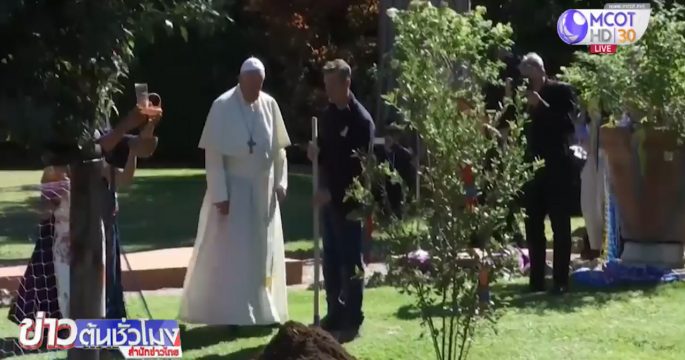 สมเด็จพระสันตะปาปาฟรานซิส ทรงปลูกต้นโอ้คภายในสวนของนครรัฐวาติกัน ร่วมกับกลุ่มตัวแทนชนเผ่าจากผืนป่าแอมะซอน ของบราซิล