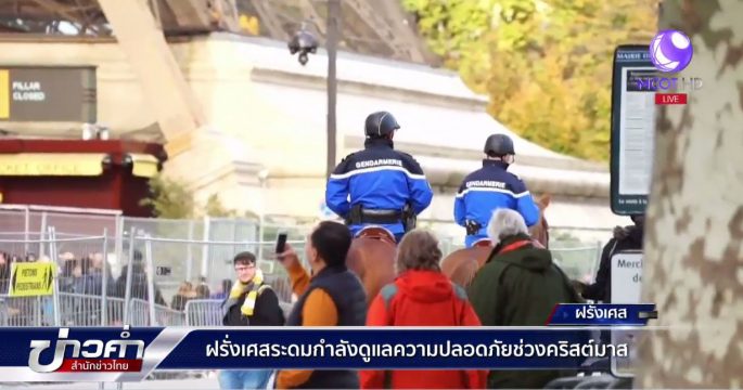 ฝรั่งเศสระดมกำลัง ตำรวจและทหาร เกือบ 1 แสนนาย ดูแลความปลอดภัย ในช่วงเทศกาลคริสต์มาส และปีใหม่ เพื่อป้องกันเหตุร้าย ที่อาจเกิดขึ้น