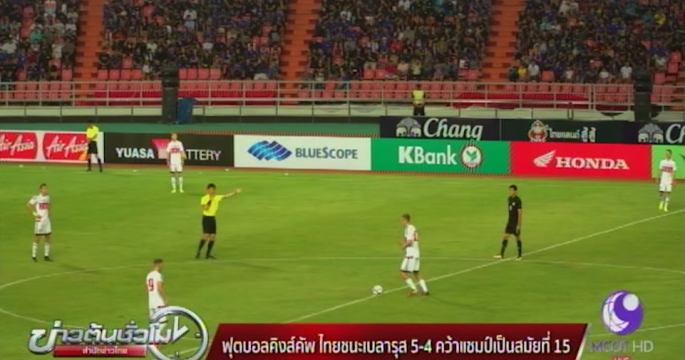 ช้างศึกไทยคว้าแชมป์ฟุตบอลชิงถ้วยพระราชทาน คิงส์ คัพ ครั้งที่ 45 ดวลจุดโทษชนะ เบลารุส 5-4 คว้าแชมป์สมัยที่ 15 ไปครองได้สำเร็จ