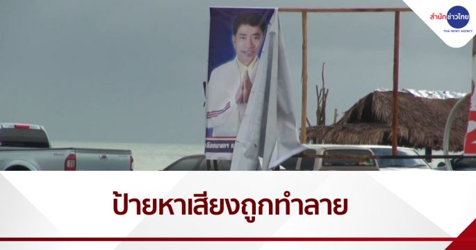 ป้ายหาเสียงของผู้สมัครเลือกตั้งนายกและสมาชิกสภา อบจ.สงขลา เขตเลือกตั้งที่ 2 อ.เมืองสงขลา ริมถนนชลาทัศน์ ถูกทำลายเหมือนของมีคมกรีดจนเสียหาย