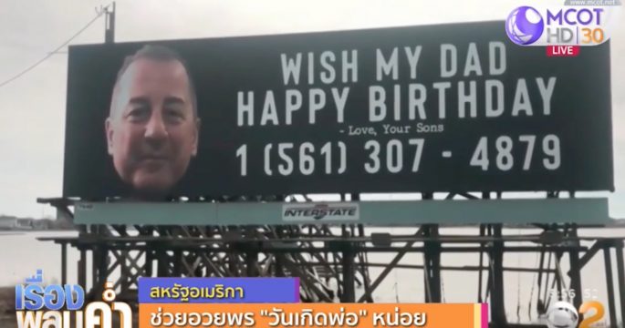 จัดใหญ่ให้คุณพ่อ! ลูกชาย 2 คน ใช้ป้ายโฆษณาขนาดใหญ่ ในเมืองรัฐนิวเจอร์ซีย์ ของสหรัฐ ให้ร่วมอวยพรวันเกิดคุณพ่อ