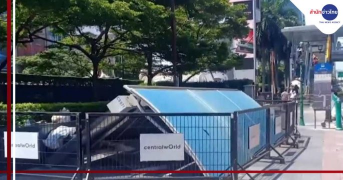 จุดพักรอรถประจำทางหน้าห้างสรรพสินค้าเซ็นทรัลเวิลด์พังถล่ม แผ่นป้ายโฆษณาหลุดมากองกับพื้น คนนั่งรอรถโดยสารบาดเจ็บ 7 พบโครงสร้างมีความเก่า เกิดสนิม อาจเป็นสาเหตุให้เกิดการหักโค่น