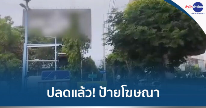 ปลดแล้ว! ป้ายโฆษณาย่านพระราม 9 ของบริษัทขายตรงที่ปรากฏเป็นข่าว หลังมีผู้เสียหายยื่นร้องเรียนกรณีลงทุนขายสินค้า
