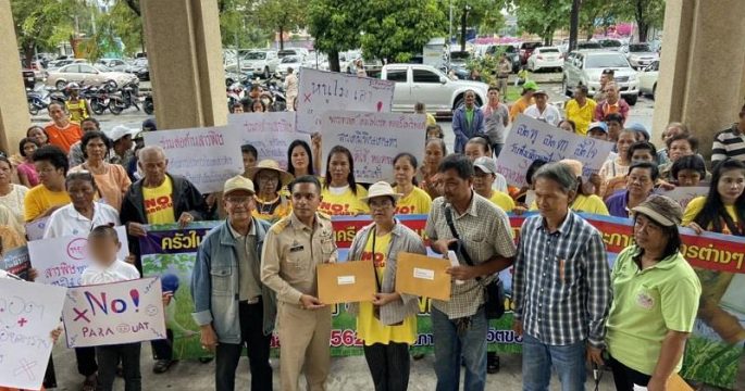 เครือข่ายภาคประชาชนและเกษตรกรยื่นหนังสือผ่านจังหวัดเรียกร้องรัฐบาลให้ประกาศเลิกใช้ 3 สารเคมี ระบุเป็นสารอันตรายมีผลกระทบต่อสุขภาพของเกษตรกร