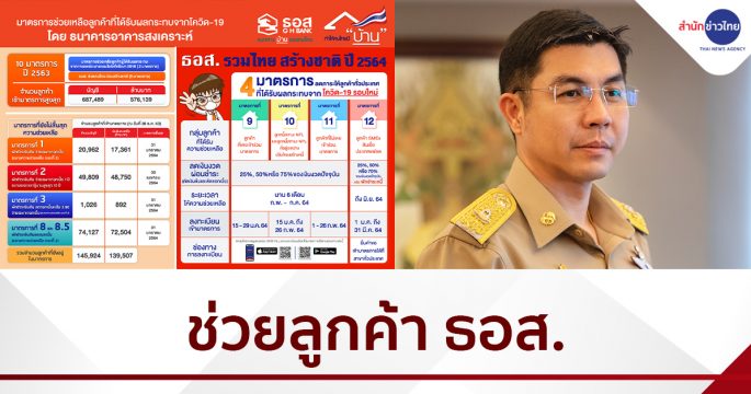 ธอส. ออก 4 มาตรการ ช่วยลูกค้าทั่วประเทศที่ได้รับผลกระทบด้านรายได้จากโควิด-19 เลือกจ่ายเงินงวดเหลือ 25% หรือ 50% หรือ 75% ตัดทั้งเงินต้นและดอกเบี้ย