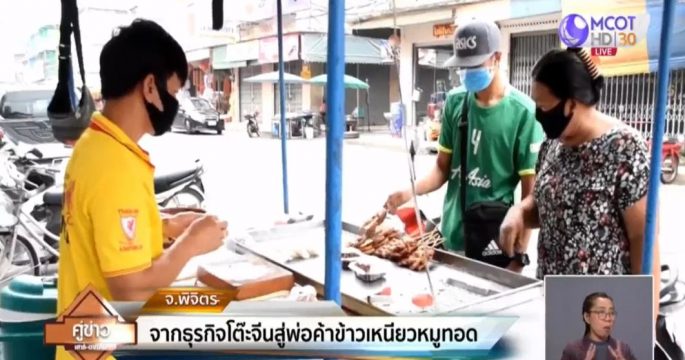 เจ้าของธุรกิจโต๊ะจีนรายใหญ่ใน จ.พิจิตร ผันตัวเองมาขายข้าวเหนียวหมูทอดกระเทียมพริกไทย สร้างรายได้ทดแทน แต่ละวันทำรายได้หลักพันบาท หลังโควิด-19 ระบาด จนผู้คนต้องยกเลิกการจัดงานเลี้ยงและสั่งโต๊ะจีน ทำขาดรายได้