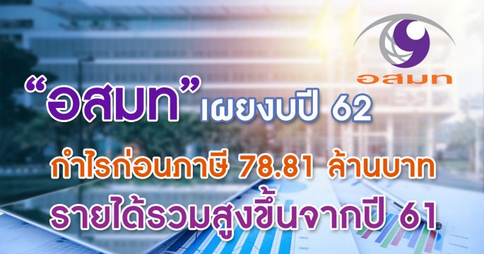 อสมท เผยปี 62 มีกำไรก่อนภาษี 78.81 ล้านบาท ธุรกิจโทรทัศน์-วิทยุ ยังสร้างรายได้หลักส่งท้ายไตรมาสสุดท้ายปี 62 ด้านวิทยุ คลื่นลูกทุ่งมหานคร ครองเเชมป์รายได้สูงสุด