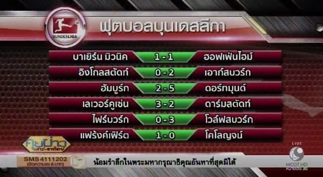 ผลฟุตบอลต่างประเทศ ฟุตบอลบุนเดสลีกา เยอรมนี, เซเรียอา อิตาลี,ลา ลีกา สเปน และฟุตบอลลีกเอิง ฝรั่งเศส