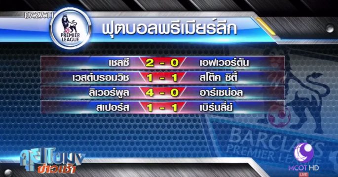 ผลฟุตบอลพรีเมียร์ลีก อังกฤษ แมนฯ ซิตี้ ถล่ม ลิเวอร์พูล 5-0 ส่วนแมนฯ ยูไนเต็ด เสมอ สโต๊ค ซิตี้