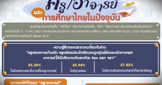 โพลสำรวจพบกรณีตรวจการบ้านผิด-แก้เกรดด้วยเซ็กซ์แลก ส่วนใหญ่ระบุว่า ไม่มีจรรยาบรรณในการเป็นครูอาจารย์ ไม่มีความรับผิดชอบต่อหน้าที่และวิชาชีพครู