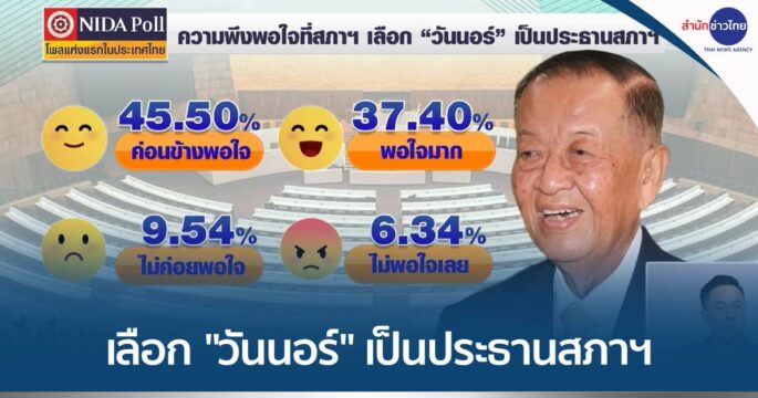 ศูนย์สำรวจความคิดเห็น “นิด้าโพล” เผยผลสำรวจประชาชน เรื่อง ความพึงพอใจที่สภาฯ เลือก “วันนอร์” เป็นประธานสภาฯ สำรวจระหว่างวันที่ 5-7 กรกฎาคม 2566 รวม 1,310 หน่วยตัวอย่าง