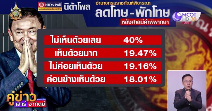 นิด้าโพล เปิดเผยผลสำรวจของประชาชน เรื่อง “อำนาจราชทัณฑ์กับการเมืองหลังพักโทษ” เกี่ยวกับอำนาจของกรมราชทัณฑ์ในการพิจารณาลดโทษหรือพักโทษให้กับนักโทษ