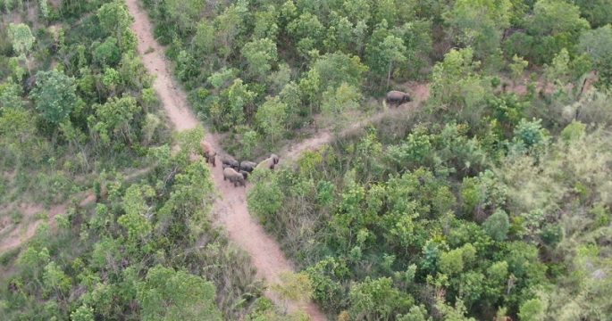 ผลักดันช้างนับสิบตัวเข้าป่าห้วยขาแข้ง หลังเหยียบชาวบ้านตาย