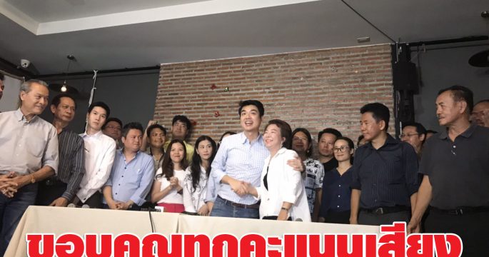นายปิยบุตร แสงกนกกุล เลขาธิการพรรคอนาคตใหม่ นำ ส.ส.พรรคแถลงขอบคุณทุกคะแนนเสียง หลังทราบผลคะแนนเลือกตั้งซ่อม จ.นครปฐม อย่างไม่เป็นทางการ