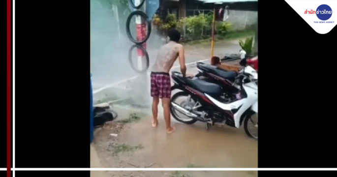 ฮือฮาในโลกออนไลน์ ชายวัยรุ่นบิด จยย. เร่งเครื่องให้ล้อรถผันน้ำที่เอ่อท่วมออกจากบ้าน ผ่านไป 20 นาที ระดับน้ำลดลง