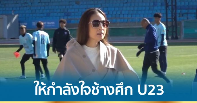 “มาดามแป้ง” นวลพรรณ ล่ำซำ ผู้จัดการทีมช้างศึก U23 เดินทางให้กำลังใจนักเตะถึงสนามฝึกซ้อม ก่อนจะพบมองโกเลีย