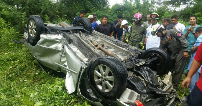 เกิดอุบัติเหตุรถยนต์ผู้จัดการธนาคารกรุงศรีฯ เสียหลักพุ่งตกทางด่วนอุดรรัถยาเสียชีวิต คาดฝนตกถนนลื่น