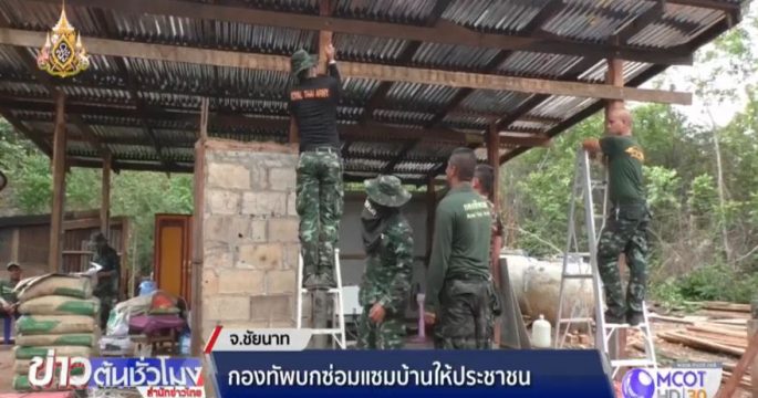 ทหาร พร้อมด้วยหน่วยงานที่เกี่ยวข้องซ่อมแซมที่อยู่อาศัยให้กับผู้ยากไร้และผู้ด้อยโอกาส ชาวบ้านกล่าวทั้งน้ำตา รู้สึกดีใจและตื้นตันใจที่มีผู้เข้ามาให้ความช่วยเหลือ