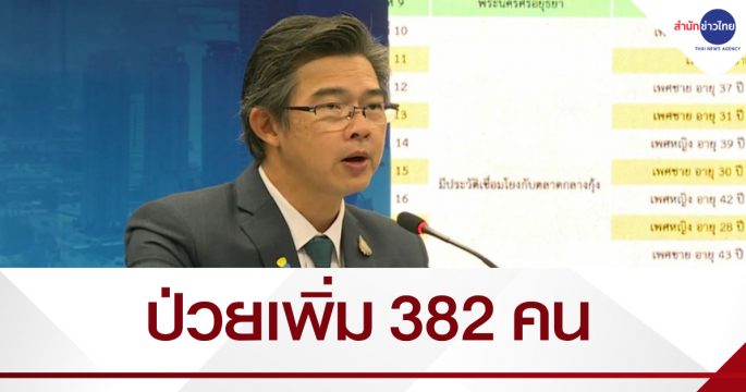 ศบค.รายงานพบผู้ติดเชื้อโควิด-19 รายใหม่เพิ่มอีก 382 คน ส่วนใหญ่มีประวัติเชื่อมโยงตลาดกลางกุ้ง จ.สมุทรสาคร