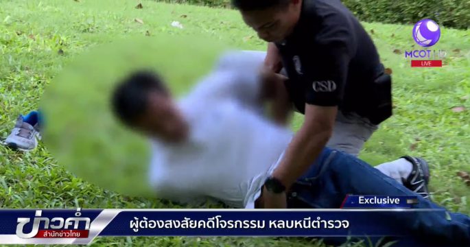ผู้ต้องสงสัยคดีโจรกรรมรถจักรยานยนต์ปีนหน้าต่างห้องสอบสวนกองปราบปราม วิ่งหนี ตำรวจต้องระดมกำลังวิ่งไล่ตามและยิงปืนขู่ก่อนรวบตัวได้