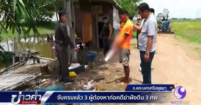 ตำรวจพระนครศรีอยุธยาจับกุมผู้ต้องหาร่วมก่อคดีฆ่าฝังดิน 3 ศพ ได้ครบทั้ง 3 คนแล้ว คุมตัวสอบเครียดเตรียมแยกตัวส่งศาลดำเนินคดี