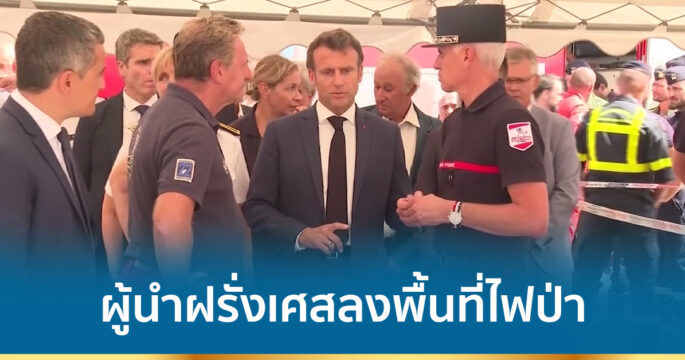 ประธานาธิบดีฝรั่งเศสลงพื้นที่เกิดไฟป่า เพื่อให้กำลังใจเจ้าหน้าที่ปฏิบัติงานสกัดกั้นไฟป่าครั้งร้ายแรง กินพื้นที่เป็นบริเวณกว้างกว่าช่วงเดียวกันของปีที่แล้ว
