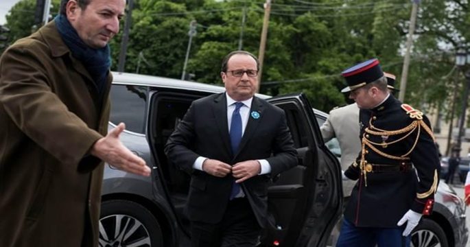 เอ็มมานูเอล มาครง ผู้ชนะการเลือกตั้งประธานาธิบดีฝรั่งเศสเข้าร่วมพิธีรำลึกวาระครบรอบ 72 ปีชัยชนะของกลุ่มสัมพันธมิตร พร้อมกับนายฟรองซัวส์ โอลลองด์ ผู้นำฝรั่งเศสคนปัจจุบันที่กำลังจะพ้นจากตำแหน่ง