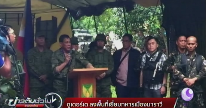 ผู้นำฟิลิปปินส์ ลงพื้นที่เมืองมาราวี ตรวจเยี่ยมให้กำลังใจทหารที่ปฏิบัติภารกิจกวาดล้างกลุ่มรัฐอิสลาม (ไอเอส)