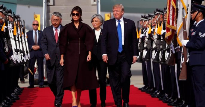 ประธานาธิบดีโดนัลด์ ทรัมป์ ผู้นำสหรัฐเดินทางถึงเกาหลีใต้แล้วในวันนี้ เป็นแห่งที่สองของการเยือนภูมิภาคเอเชีย 12 วัน