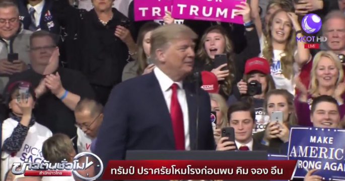 ประธานาธิบดีโดนัลด์ ทรัมป์ ผู้นำสหรัฐ ปราศรัยกับผู้สนับสนุนที่ มูน ทาวน์ชิป ในรัฐเพนซิลวาเนีย โดยเชื่อว่านับจากนี้ไปจนถึงวันที่จะได้พบปะกับนายคิม จอง อึน ผู้นำเกาหลีเหนือ จะไม่เกิดการทดลองยิงขีปนาวุธ