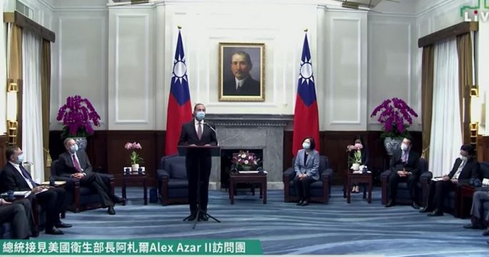 นายอเล็ก อาซาร์ รัฐมนตรีสาธารณสุขสหรัฐแจ้งกับประธานาธิบดีไช่ อิงเหวินของไต้หวันว่า ประธานาธิบดีโดนัลด์ ทรัมป์ของสหรัฐให้การสนับสนุนไต้หวันอย่างเต็มที่