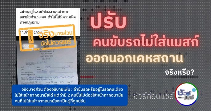 ชัวร์ก่อนแชร์ : ปรับคนขับรถไม่ใส่แมสก์-ออกนอกเคหสถาน จริงหรือ?
