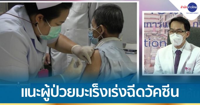 สถาบันมะเร็งแห่งชาติ แนะผู้ป่วยมะเร็งเร่งฉีดวัคซีนโควิดทันทีที่มีโอกาส เพื่อลดความรุนแรงและเสียชีวิต หากติดเชื้อโควิด