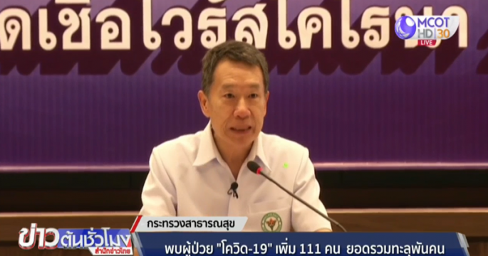 กรมควบคุมโรค แถลงสถานการณ์โควิด-19 ประจำวัน พบผู้ป่วยรายใหม่ 111 ราย ส่งผลให้ยอดผู้ป่วยสะสมของไทยอยู่ที่ 1,045 ราย