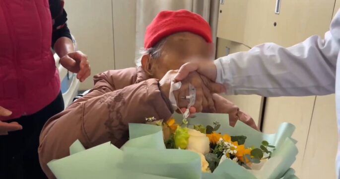 หญิงจีนวัย 101 ปี จูบมือขอบคุณหมอ หลังหายโควิด-19