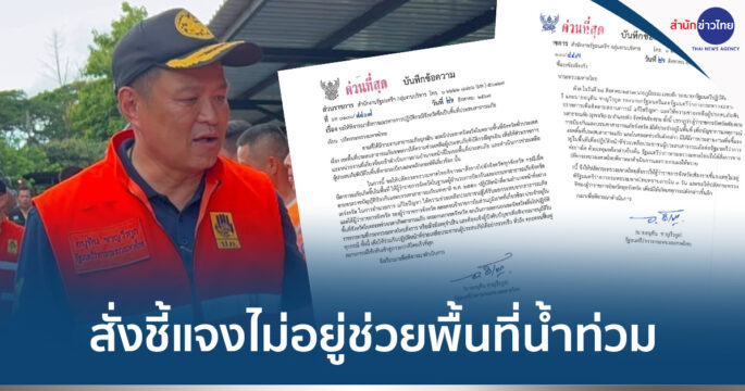 “มหาดไทย” ออกหนังสือให้ ผู้ว่าฯ เชียงราย ชี้แจงภายใน 3 วัน เหตุไม่อยู่ในพื้นที่ช่วงประชาชนประสบอุทกภัย พร้อมร่อนหนังสือกำชับข้าราชการท้องถิ่น งดออกนอกพื้นที่ในช่วงที่จังหวัดน้ำท่วม