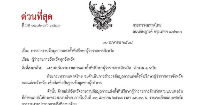 สั่งการผู้ว่าฯ ทั่วประเทศ คุ้มครองสิทธิปชช. ปม DSI สอบฮั้วสว.