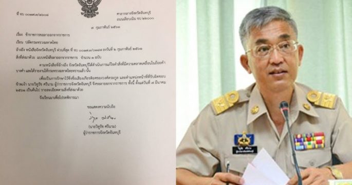 ผู้ว่าฯ จันทบุรี ประกาศลาออกจากราชการ หันหน้าสู่ร่มกาสาวพัสตร์