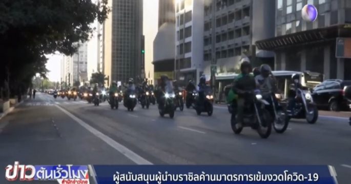 กลุ่มผู้สนับสนุนประธานาธิบดีบราซิลออกมาชุมนุมประท้วงตามท้องถนน คัดค้านมาตรการเข้มงวดต่างๆ ที่แต่ละรัฐใช้ในการควบคุมการแพร่ระบาดของเชื้อโควิด-19 พร้อมเรียกร้องให้ผู้ว่าการรัฐเซาเปาโลลาออก