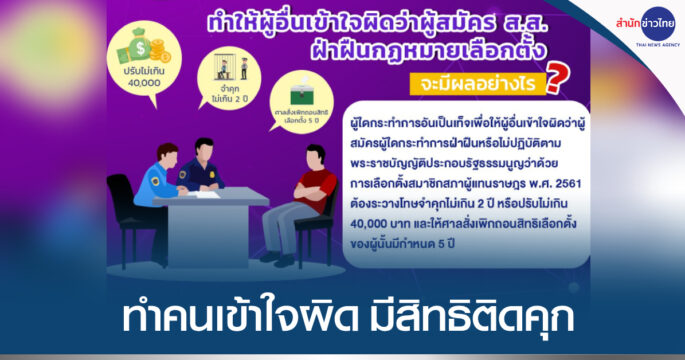 กกต.แจงโทษทำคนเข้าใจผิดผู้สมัคร ส.ส.ฝ่าฝืนกฎหมายเลือกตั้ง มีสิทธิจำคุกไม่เกิน 2 ปี ปรับไม่เกิน 4 หมื่นบาท เพิกถอนสิทธิเลือกตั้ง 5 ปี หลังมีการร้องเรียนคุณสมบัติว่าที่ ส.ส.รายวัน