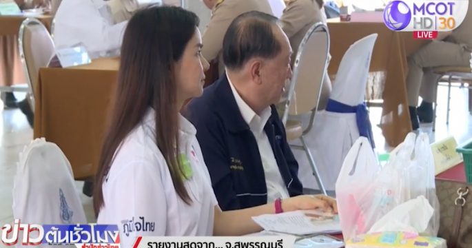บรรยากาศที่หอประชุมที่ว่าการอำเภอเมืองสุพรรณบุรี ขณะนี้ยังอยู่ในขั้นตอนการตรวจเอกสาร สำหรับผู้สมัครลงเลือกตั้ง ส.ส. ของจังหวัดสุพรรณบุรีทั้ง 4 เขต