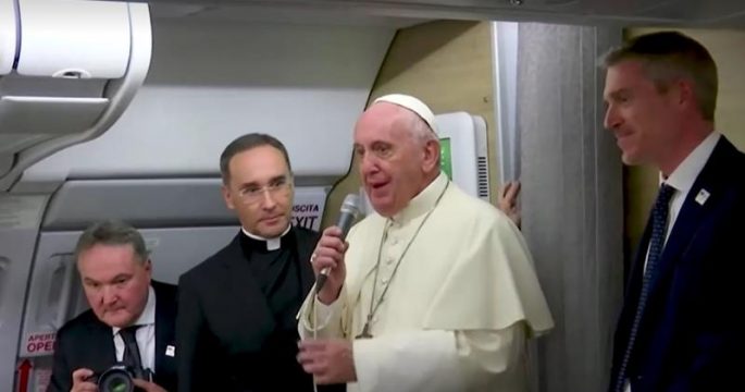 สมเด็จพระสันตะปาปาฟรังซิส ประมุขคริสต์จักรนิกายโรมันคาทอลิกทรงขอบใจคณะผู้สื่อข่าวที่ตามเสด็จการเยือนไทยและญี่ปุ่น