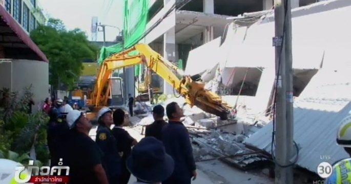วันนี้เจ้าหน้าที่ใช้เครื่องจักรขนาดใหญ่เข้าไปตัดซากคอนกรีตออก เพื่อเปิดทางเข้าค้นหาร่างผู้เสียชีวิต ซึ่งพบว่าอยู่ลึกลงไปใต้ซากอาคารประมาณ 5 เมตร