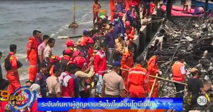 กู้ภัยอินโดนีเซียระงับค้นหาผู้สูญหาย 17 คน จากเหตุเพลิงไหม้เรือโดยสารนักท่องเที่ยว เนื่องจากเป็นเวลากลางคืน เริ่มค้นหาใหม่พรุ่งนี้เช้า