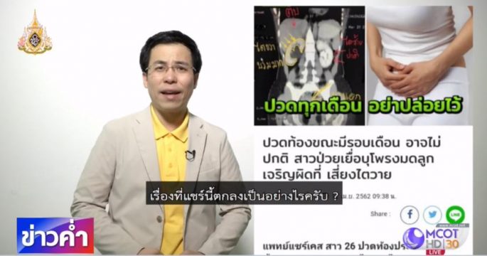 บนสังคมออนไลน์แชร์เตือนผู้หญิงที่มักปวดท้องประจำเดือนอาจไม่ใช่เรื่องปกติ โดยมีกรณีแพทย์พบผู้ป่วยปวดท้องประจำเดือนรุนแรงมานาน 10 ปี ก่อนตรวจพบเป็นโรคเยื่อบุโพรงมดลูกเจริญผิดที่ เรื่องนี้จริงหรือไม่ ? ติดตามจากศูนย์ชัวร์ก่อนแชร์