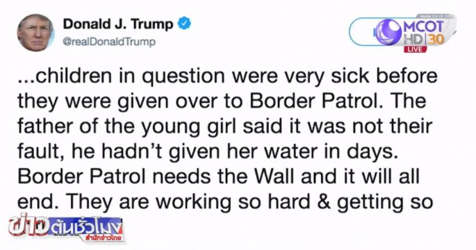 ประธานาธิบดีโดนัลด์ ทรัมป์ ผู้นำสหรัฐโพสต์ทวิต กล่าวโทษพรรคเดโมแครต และนโยบายคนเข้าเมืองของพรรค ที่ทำให้ผู้อพยพเชื่อว่า สามารถลักลอบเข้าสหรัฐได้ จนทำให้เกิดโศกนาฏกรรม